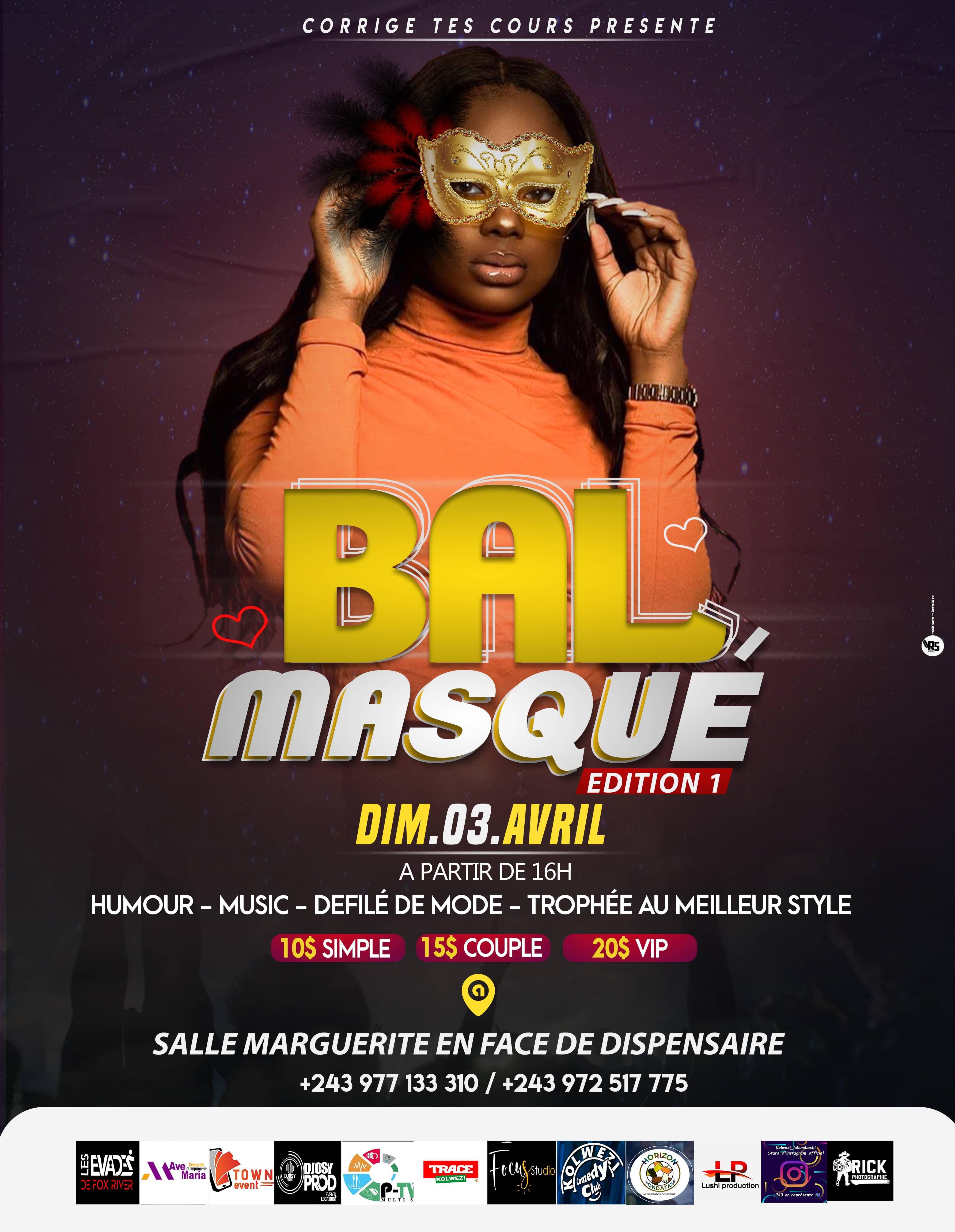 | Prix du billet : | Simple fc 20000 Franc congolais SIMPLE DOL 10 Dollars COUPLE FC 30000 Franc congolais COUPLE DOL 15 Dollars VIP FC 40000 Franc congolais VIP DOL 20 Dollars | |