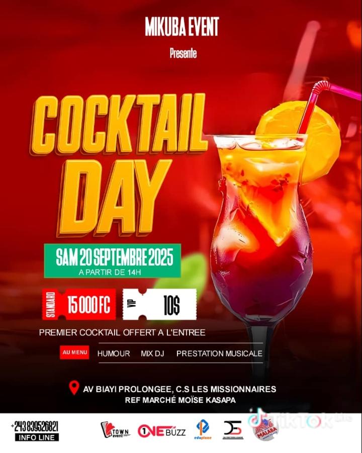 MIKUBA EVENT Présente COCKTAIL DAY Un évènement riche en couleurs, au menu ; mix DJ, humour, prestations musicales et bien d'autres surprises avec un cocktail offert à l'entrée.