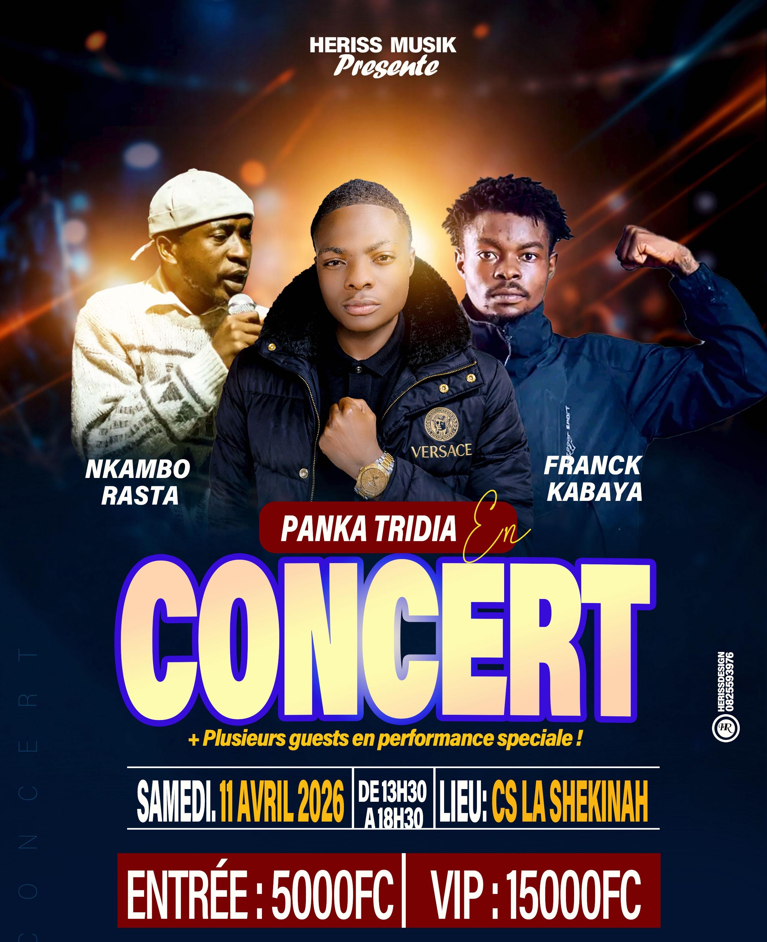Ne ratez pas le Weekend Show d'Heriss Musik à Kolwezi ! RDV le 11 avril 2026 (13h30-18h30) au CS La Shekinah (Luilu). Avec Panka Tridia, Franck Kabaya, Nkambo Rasta et les talents locaux. Un grand moment culturel !
