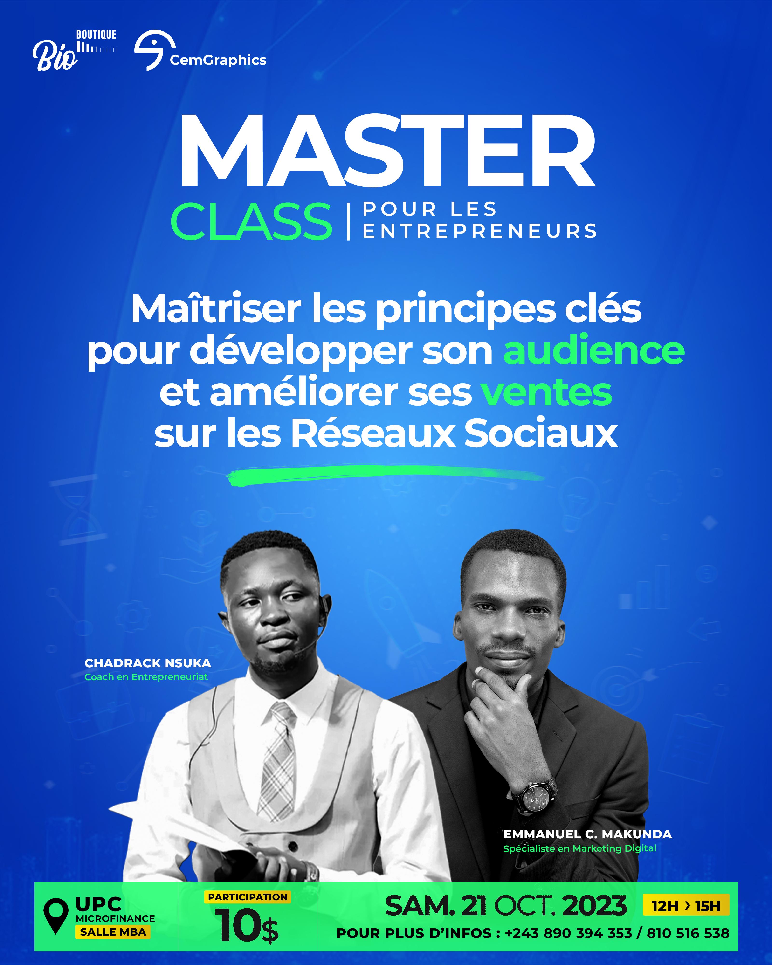 ✅ Thème : Maîtriser les principes clés pour développer son audience et améliorer des ventes sur les Réseaux Sociaux ✅ Date : Samedi 21 Octobre 2023 ✅ Heure : De 12h à 15h ✅ Lieu : UPC | Microfinance (Salle MBA)