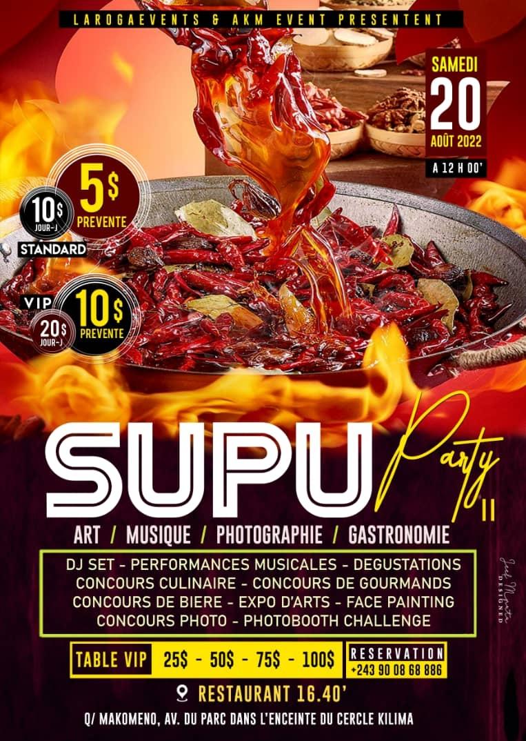 SUPU PARTY 🌶🍅 venez découvrir la #Gastronomie #Congolaise et #Africaine présentée par les meilleurs services traiteur 🍔🍟🍜 de la ville 👌🏽 accompagné des meilleures boissons, bières 🍺, cocktail 🍹, liqueur 🥃, tout ceci autour de la très bonne #Musique jouer par les meilleurs #Artiste et #Dj de la ville 🔥