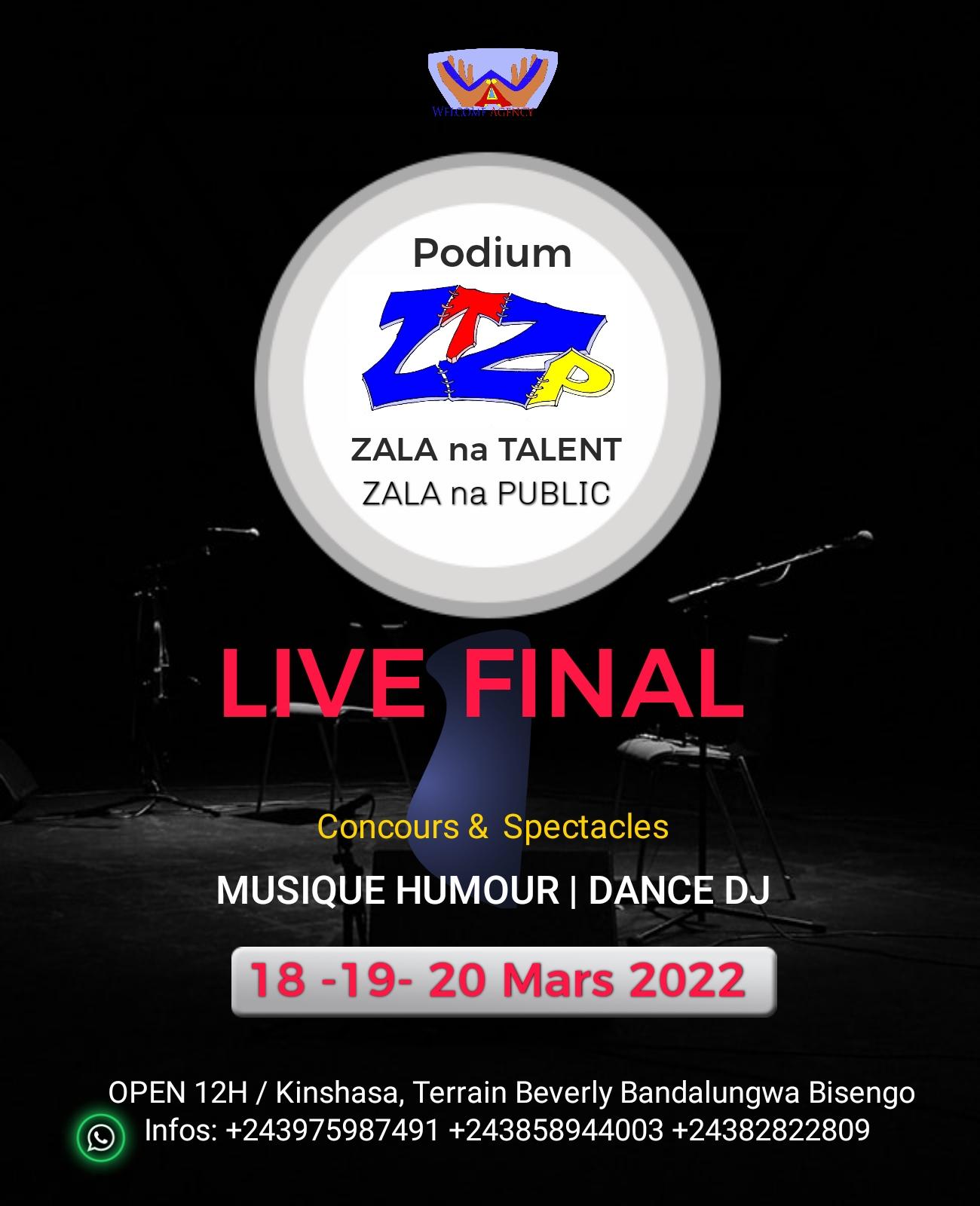 Live du Concours et Spectacles du podium Zala na talent Zala na public. Thème : "Culturel vecteur de paix et de Citoyenneté" Catégorie : Musique, dance, Humour, Mix DJ...